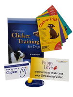 Karen Pryor's Dog Training Kits contain everything you need to train your new puppy, adopted dog, or older dog! You'll see a difference in your dog in just a few short sessions!