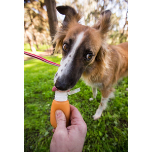 The challenges with high-value treats like peanut butter, liverwurst, and pureed food are that they are messy and that there is no easy way to transport them on the go. The GoToob changes that! Made of soft yet rugged food-grade silicone, it dispenses virtually any squeezable treat. Unscrew the cap and fill with your dog's favorite mushy food. Then, just flip open the hinged cap and squeeze. Features a handy suction cup that can attach to wall for when you need to be hands free. Perfect for general dog training when high-value treats are needed, and an invaluable tool for desensitization/counterconditioning for dogs with fear issues. Food-safe, 100% BPA-Free and PC-free. Holds 2 ounces.