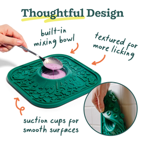 This LickMat is an innovative spin on a classic product to provide enrichment and distraction for your pup. Use the integrated 'mixing bowl' to create your own recipes for a unique, long-lasting, treat!